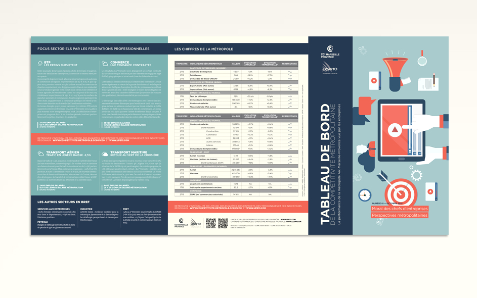 Pour accompagner l’élaboration du projet métropolitain et aujourd’hui sa réalité, la CCI Marseille Provence et l’Union Pour les Entreprises des Bouches-du-Rhône lancent le Tableau de bord de la compétitivité métropolitaine. Il constituera une première base d’analyses et d’orientations, à travers le prisme du monde économique qui, plus que jamais, entend être un acteur de son territoire.