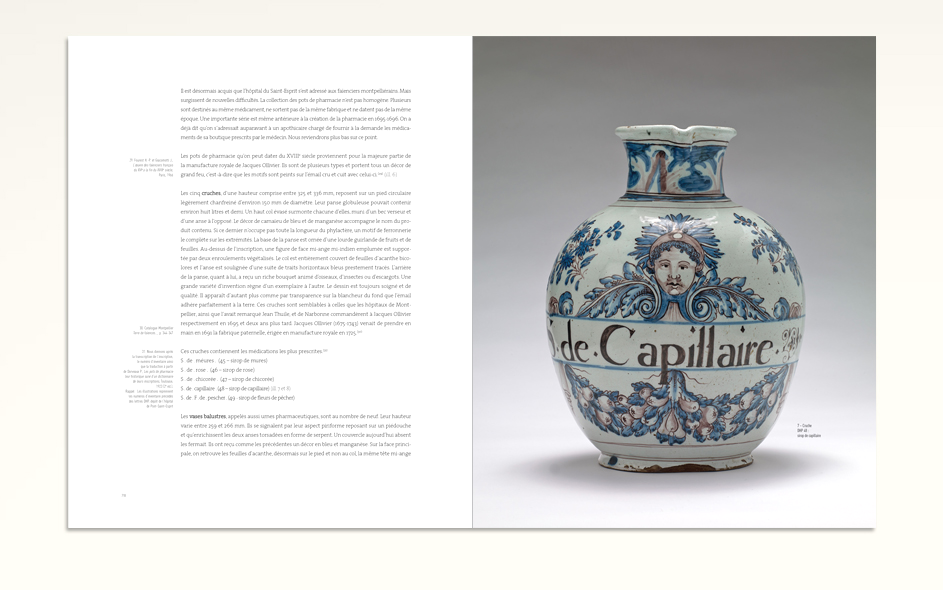 L’histoire de l’art a longtemps considéré — et considère encore pour certains — les pots de pharmacie comme une production mineure, de surcroît faite en série, concédant à quelques rares récipients fonctionnels un caractère artistique. Réduire une apothicairerie hospitalière à son meuble et aux pots qu’il abrite reviendrait à se priver de vouloir donner à la réalité factuelle livrée par cette seule source cohérence et sens afin de la rendre intelligible. C’est pourquoi cette étude est placée sous le signe de la durée, qui permet d’étudier ce qui vient de loin, ce qui demeure et ce qui est nouveau, afin de tenter de comprendre la façon dont s’articulent les faits, les idées, les croyances. Une apothicairerie hospitalière est indissociable du fonctionnement quotidien de l’établissement pour lequel elle a été conçue. Elle en est le reflet. Photographies : M. Daspet et JL. Maby. Couverture rembordée Cousu — 160 pages + 4 — 230X280 mm.